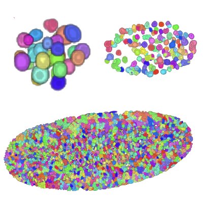 The first step for the lineage reconstruction of a developing embryo is to detect the positions of cells from 3D imaging data. Starting from simple algorithms combining basic and traditional image processing filters, we have developed more complicated algorithms based on integer programming and deep neural networks by feeding grand-truth data obtained from the basic algorithms into more sophisticated algorithms as training data sets (Learn more: [1], [2]).